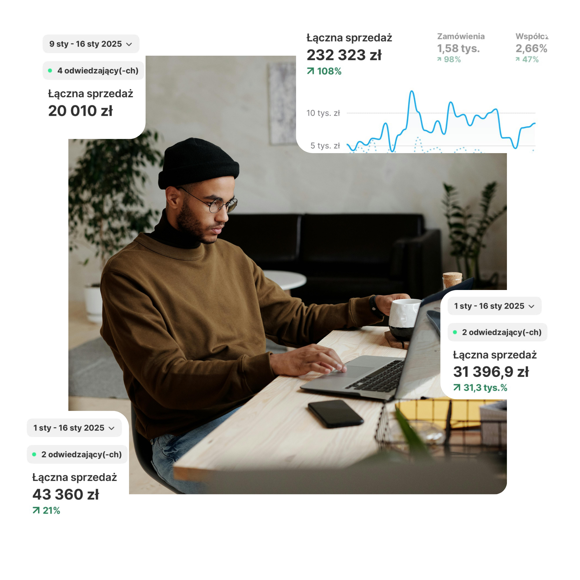 Optymalizujemy ścieżkę zakupową, poprawiając każdy etap doświadczenia klienta, co skutkuje wyższą konwersją i większymi przychodami z Twojego sklepu.